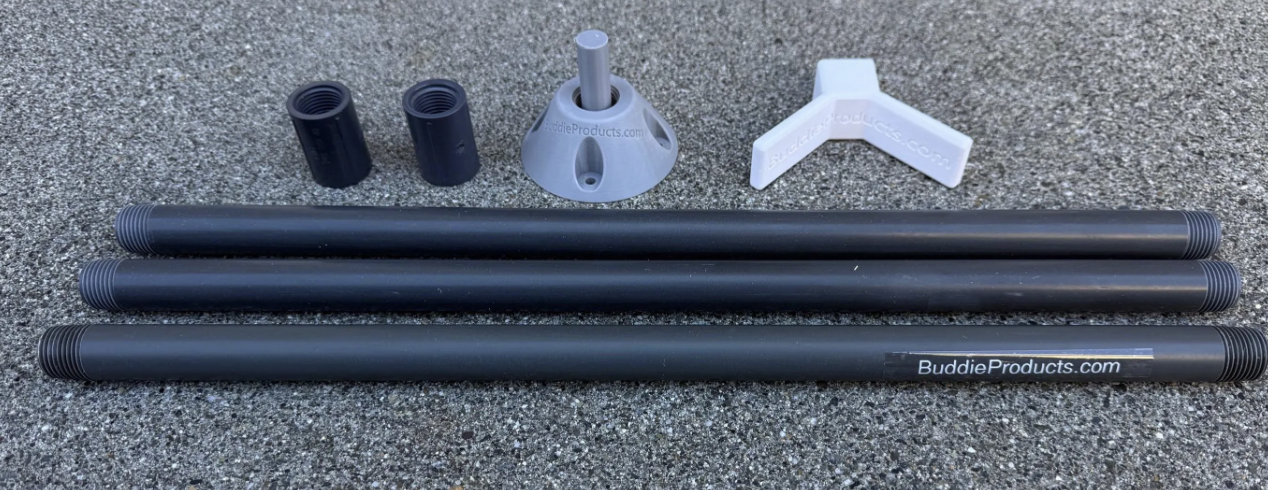 Deck Mounted Dock Buddie screws into your existing dock. It comes with 3 - 18" pole sections and 2 pole couplings which can be configured to provide line holding heights 1.5' 3' or 4.5'. Dock Buddie is a simple yet innovative device to aid in docking your boat. It can help minimize the need for you or your crew to jump off the boat, fetch the lines which have sometimes fallen in the water, and pass them to a deck mate to secure to the boat. Having quick and easy access to spring or stern lines can help avoid hitting the dock or your dock neighbor's boat. Screws not provided as the size required for your situation may vary.