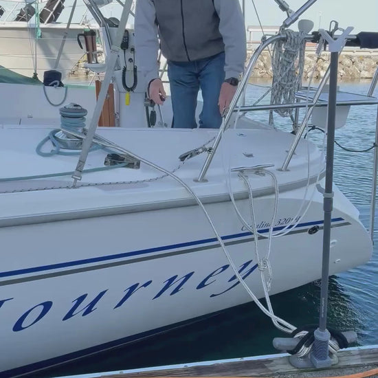 Deck Mounted Dock Buddie holds your Dock Line for you. Ideal for single or short handed boaters.